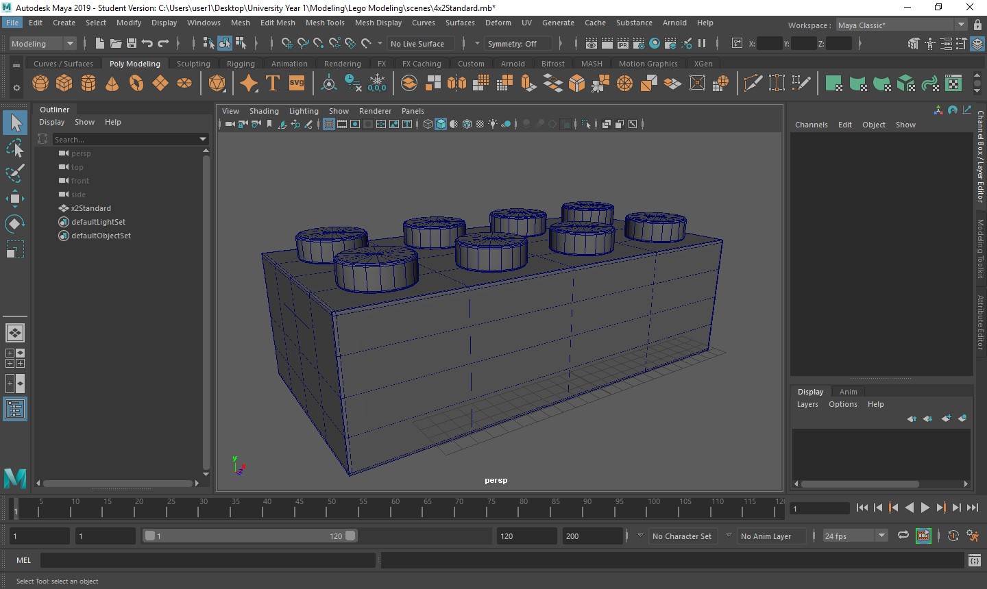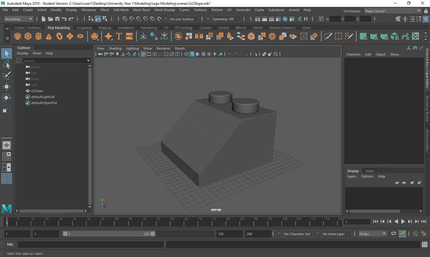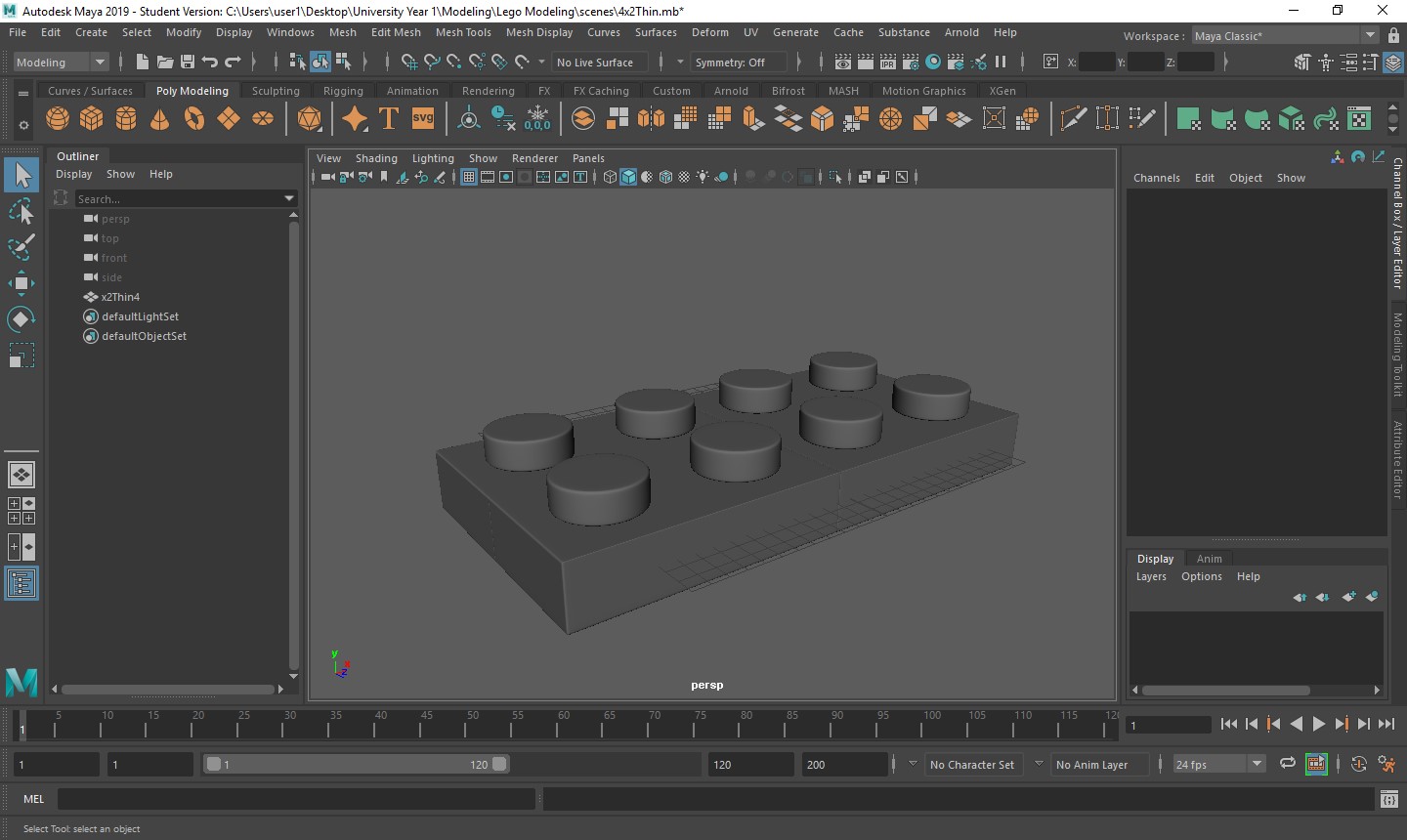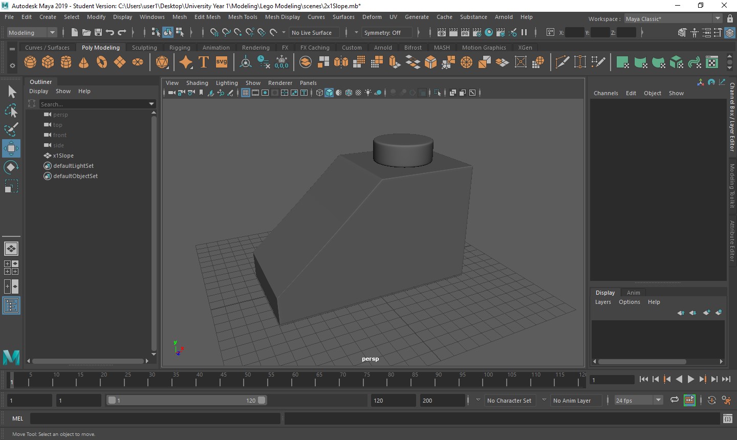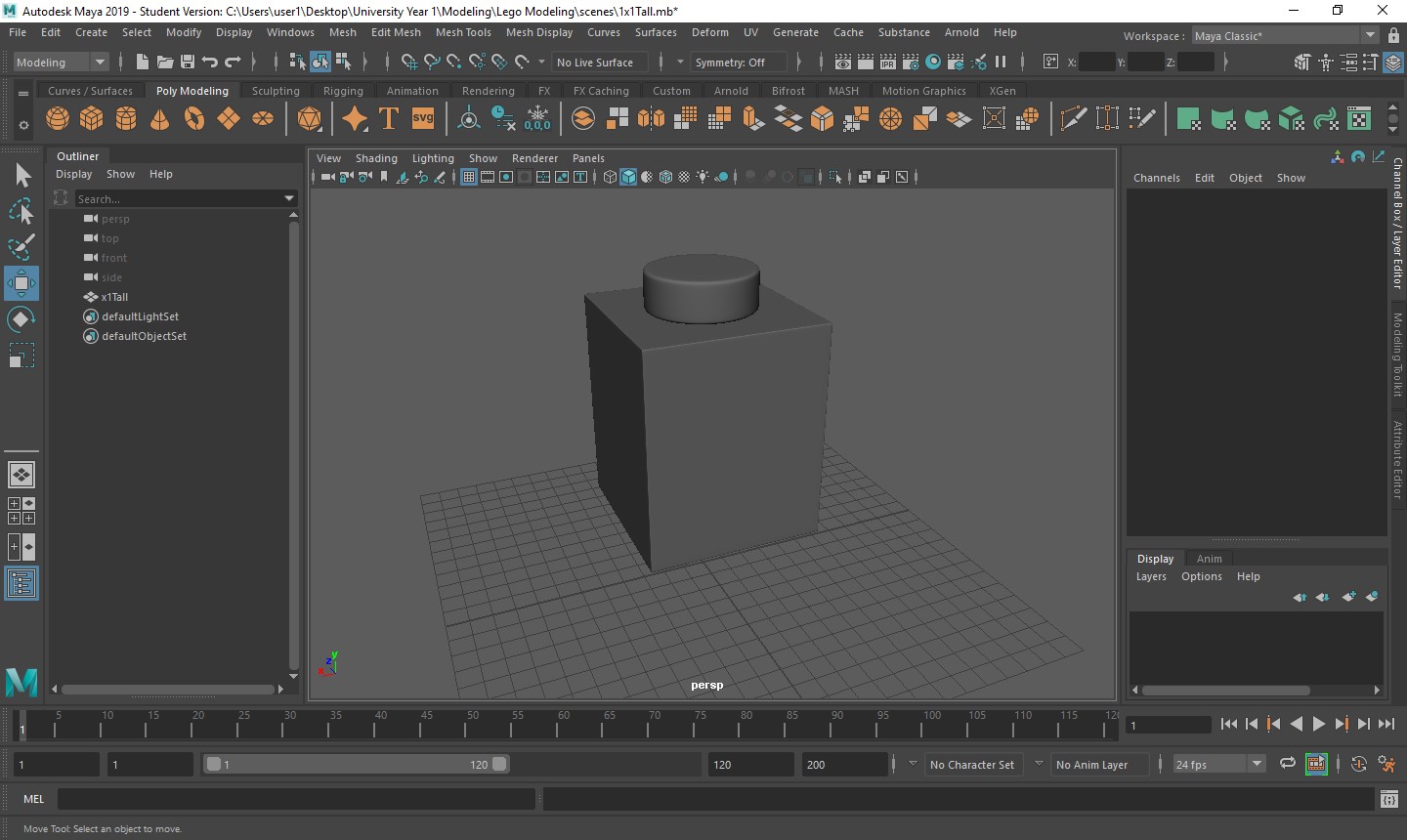 With all of these starting factors now in place, it is time to decide on what elements of this project I want to start first. The most logical starting point is to build a lot of the components, like bricks and models, so I can then animate and texture them later. Knowing this, I went into the software I will be using to create such components, Maya, and created a work space ready for me to start.